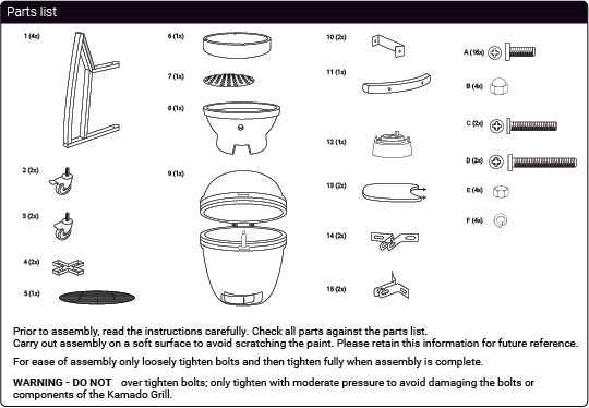 Leave until all the fuel is burnt out and extinguished. After first use inspect all the fasteners for tightness. The metal band connecting your lid to the base will expand from the heat and this may become loose. It is recommended you check and if necessary, tighten the band with a spanner. You can now use your Kamado as normal.